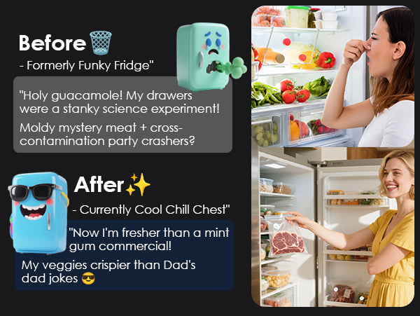 - Bye-bye mystery smells & stinky surprises — hello crisp veggies and minty-fresh meals!
